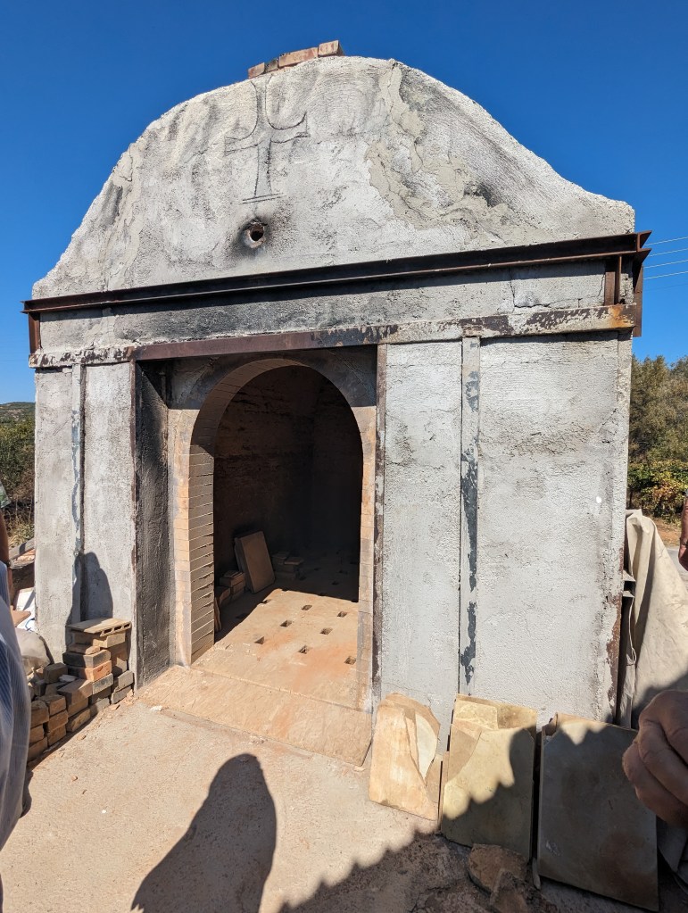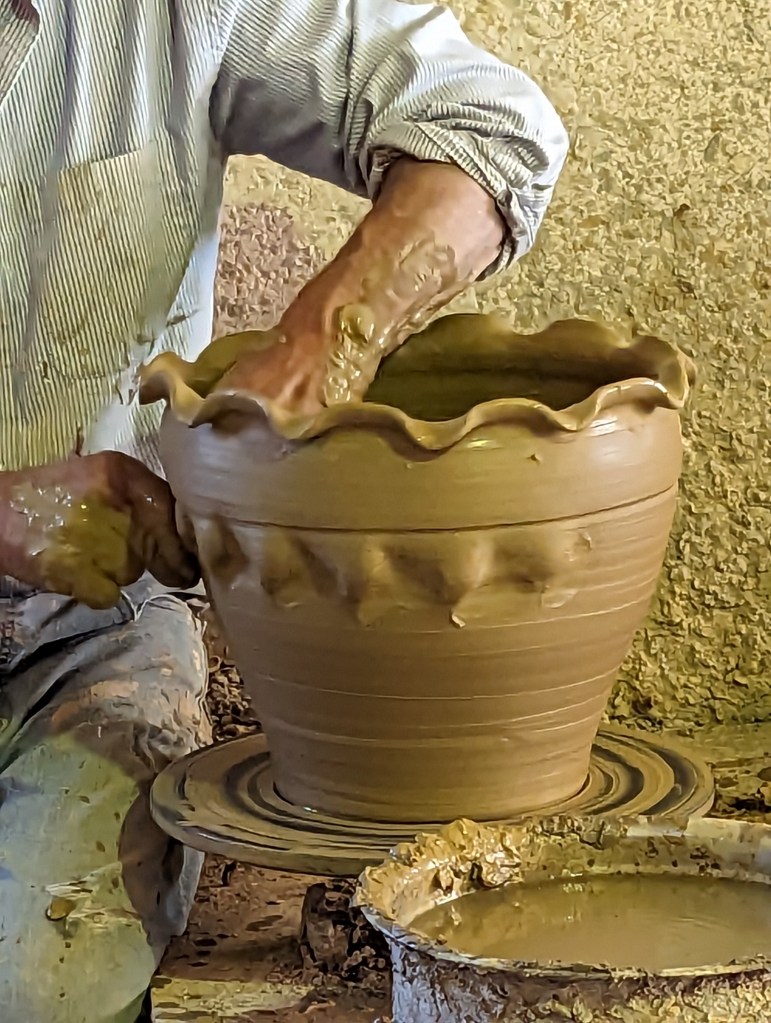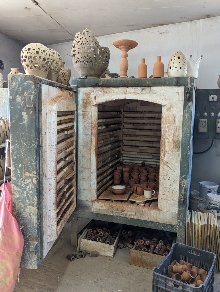 After the demonstration, the potter gave us a tour of his shop, which included his two kilns, one for the small objects, and one for the much larger pots.