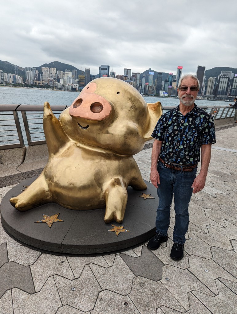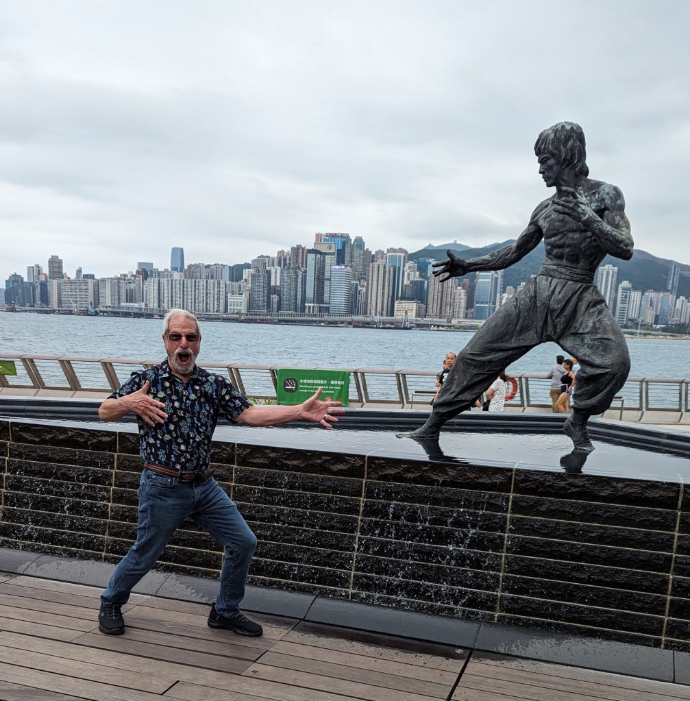 The next morning, as we waited to transfer to our ship, we walked the promenade—Avenue of the Stars—in front of the hotel, along Victoria Harbor.
