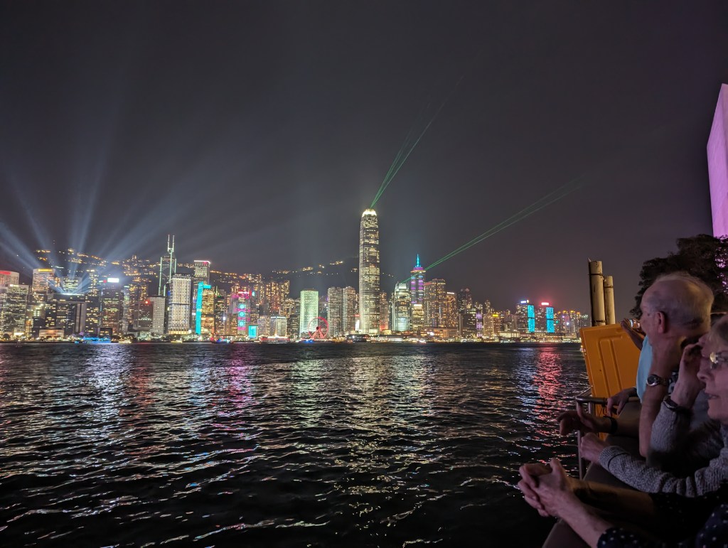 After dinner, we walked to Victoria Harbor to watch the SYMPHONY OF LIGHTS, a multimedia spectacle composed of lights, lasers, holograms and searchlights synced to music.